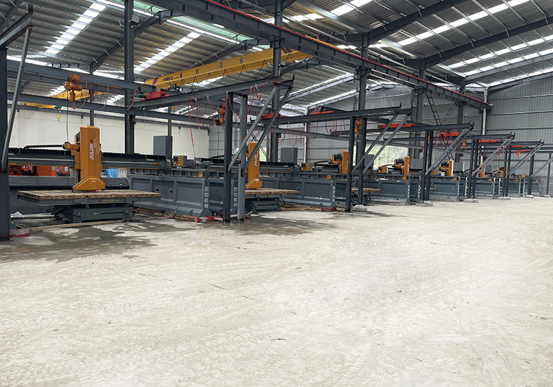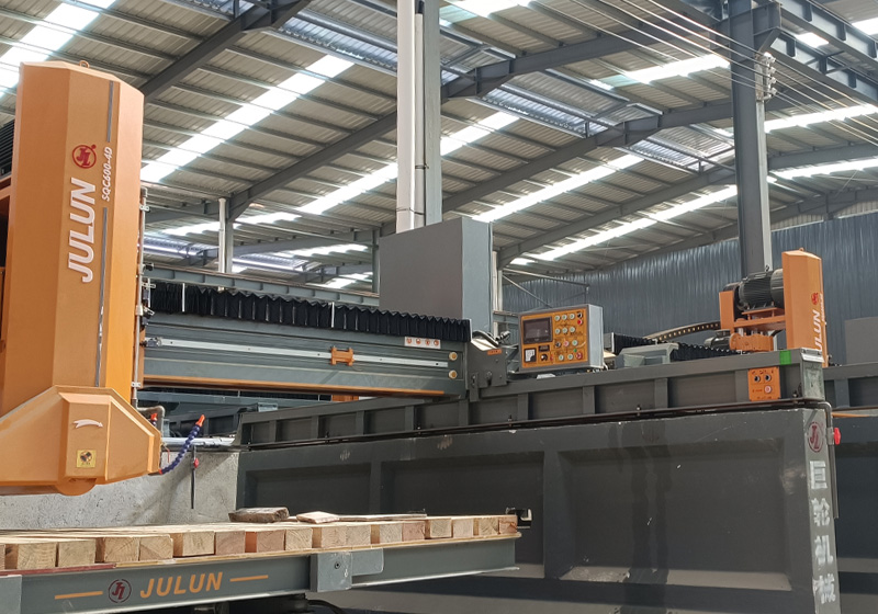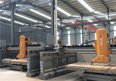 該機(jī)采用PLC可編程控制系統(tǒng)和人機(jī)操作界面,輔以高精度旋轉(zhuǎn)編碼器定位及紅外線標(biāo)線器,左右走刀采用變頻器控制,可根據(jù)石材材質(zhì)進(jìn)行調(diào)速,上下升降采用液壓升降,結(jié)合鍍鉻導(dǎo)柱+耐磨導(dǎo)套,配合間隙小,耐磨美觀,并在導(dǎo)套內(nèi)設(shè)計(jì)多層密封,防水防塵防漏油,提高使用壽命,關(guān)鍵部位均采用進(jìn)口零配件,因而具有切割效率高、切割精度高、穩(wěn)定性高、操作簡(jiǎn)便等優(yōu)點(diǎn),特別適用于高價(jià)值大規(guī)格花崗巖、大理石板材的切割。