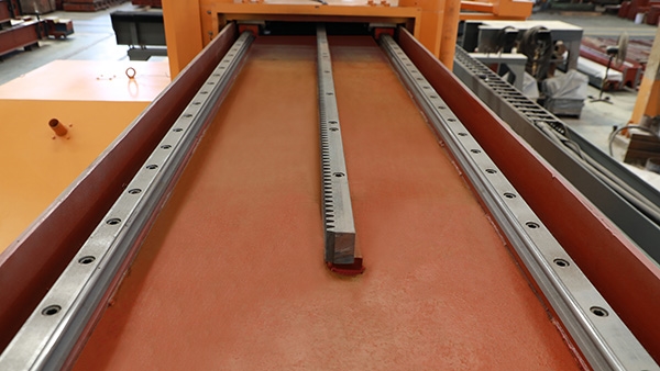 1、大梁采用外模鋼板+工業(yè)級(jí)鋼筋混凝土結(jié)構(gòu),左右行走采用進(jìn)口直線(xiàn)導(dǎo)軌導(dǎo)向,行走更靈活、切割的板材平整度好。